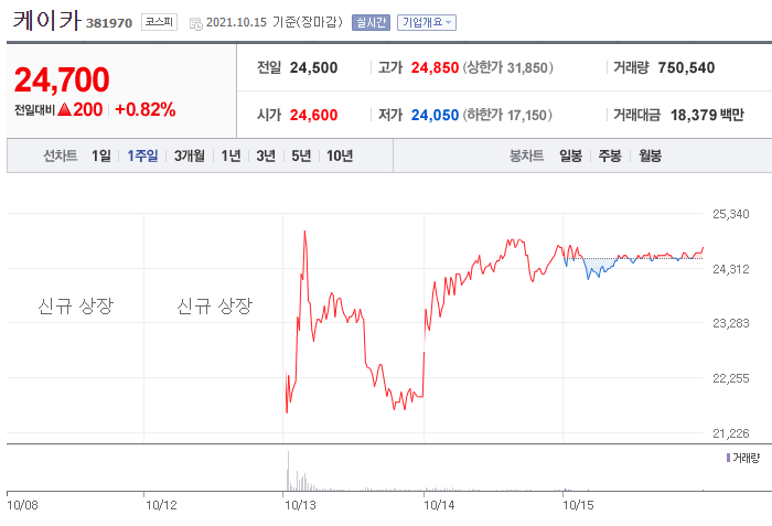 케이카의 경우 상장 첫날 변동폭은 컸지만, 그 후 현재의 움직임은 생각보다 나쁘지 않게 흘러가고 있습니다. 공모주 청약 흥행은 실패했지만, 실제 주가는 크게 실패하는 분위기는 아니네요.